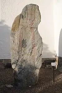 Ship images appear on several Viking Age runic inscriptions. Other runic inscriptions from the Viking Age which depict ships include DR 77 in Hjermind, DR 119 in Spentrup, DR 220 in Sønder Kirkeby, DR 258 in Bösarp, DR 271 in Tullstorp, DR 328 in Holmby, DR EM85;523 in Farsø, Ög 181 in Ledberg, Ög 224 in Stratomta, Sö 122 in Skresta, Sö 154 in Skarpåker, Sö 158 in Österberga, Sö 164 in Spånga, Sö 351 in Överjärna, Sö 352 in Linga, Vg 51 in Husaby, U 370 in Herresta, U 979 in Gamla Uppsala, U 1052 in Axlunda, U 1161 in Altuna, and Vs 17 in Råby.[1] Three stones, the Hørdum and Långtora kyrka stones and U 1001 in Rasbo, depict ships but currently do not have any runes on them and may never have had any.[1]