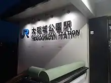 Osakajo-koen Station Sign (Located at entrance) at night.