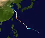 Louise formed on September 20 as a weak tropical depression. It intensified into a tropical storm and even a typhoon later. Wind shear quickly decreased and sea surface temperatures began to rise and Louise rapidly intensified into a category 5 super typhoon. However, the process of eyewall replacement cycle caused Louise to weaken. Louise weakened to a category 2 typhoon and it started to affect the Kyūshū island of Japan and even weakened to a category 1 typhoon and affected Japan. Louise dissipated on September 30. On Kyūshū island, 54 people were killed and 14 went missing.