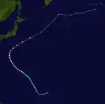The 1989 Pacific typhoon season was the first of nine consecutive years of above-average activity in the Western Pacific. It was an extremely active season spawning 32 tropical storms, 20 typhoons and five super typhoons. It has no official bounds; it ran year-round in 1989, but most tropical cyclones tend to form in the northwestern Pacific Ocean between May and November.[1] These dates conventionally delimit the period of each year when most tropical cyclones form in the northwestern Pacific Ocean. The first storm, Winona, formed on January 15, while the final storm, Jack, dissipated on December 27. This season was also quite a deadly season that were caused by a few notable storms such as Tropical Storm Cecil, which was the worst storm to impact Vietnam in over 50 years,[2] and Typhoon Gay, which directly impacted the Malay Peninsula as the worst typhoon in 35 years. Both of these storms make up around half of the total fatalities of the entire season alone.
