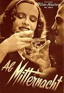 After Midnight (German: Ab Mitternacht) is a 1938 French-German drama film directed by Carl Hoffmann and starring Gina Falckenberg, Peter Voß and René Deltgen.[1] It was shot as a German-language version of the French film Nights of Princes, produced as a co-production between the French subsidiary of Tobis Film and the producer Joseph N. Ermolieff. Such multiple-language versions were common during the decade. Both films were based on the 1927 novel Nights of Princes by Joseph Kessel.