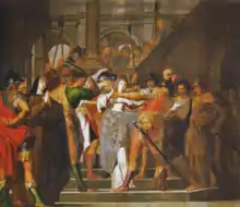 Monaldo drew his sword to strike his niece, but his arm allegedly dropped to his side, withered and useless. The others dragged Agnes out of the monastery by her hair, striking and kicking her repeatedly. Agnes' body reportedly became so heavy, perhaps due to the help of her sister, that her assailants dropped her in a field nearby. Agnes' relatives, purportedly realizing that something divine protected her, allowed the sisters to remain together. Francis himself cut her hair and gave her the religious habit, in recognition of Agnes' dedication.[2]