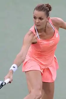 Agnieszka Roma Radwańska (Polish: [aɡˈɲɛʂka raˈdvaj̃ska] ⓘ; born 6 March 1989) is a Polish former professional tennis player. She won 20 career singles WTA Tour titles, two doubles titles, and achieved a career-high singles ranking of world No. 2 on 9 July 2012. Her achievements include winning the season-ending 2015 WTA Finals, the Women's Tennis Association (WTA) Fan Favourite Award six times, Shot of the Year five times, and Shot of the Month on a regular basis.[2][3]