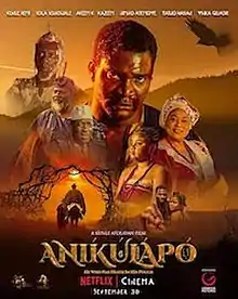 Aníkúlápó is a 2022 Nigerian epic fantasy film produced by Kunle Afolayan and distributed by Netflix. Released on 30 September 2022, it stars Kunle Remi, Bimbo Ademoye, Sola Sobowale,Hakeem Kae-Kazim and Taiwo Hassan.[1][2] The film was shot in Oyo State and Afolayan has described the work as a "Game of Thrones recreated in Nigeria but with a better representation of our culture (Yoruba culture)".[3][4]