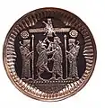 In the legend, there is a giant male lion. Like this images found on the Achaemenid Seals that shows Shahriar is hunting the lion footing on two legs as seen on the seal of Darius. This design can also be seen on the Assyrian seals, which originated from the northern Sumer and continued to the end of the civilization.