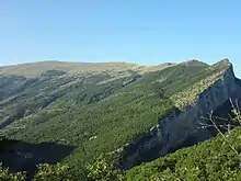 - the Nappe of Digne to the east[9] at the tip of the Valavoire lobe:[10] there is a thrust sheet - i.e. a slab nearly 5000 m thick which was displaced towards the south-west during the Oligocene at the end of the formation of the Alps. The lobes (or scales) correspond to the ragged edge west of the nappe;