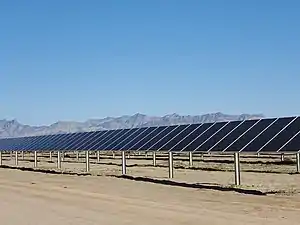The Blythe Mesa Solar Power Project, also known as the Blythe Solar Energy Center, is a 235 megawatt (MWAC) photovoltaic power plant near the city of Blythe in Riverside County, California.[2] It occupies about 2,000 acres of public land managed by the Bureau of Land Management in the Mojave Desert. The construction uses CdTe thin film panels from the U.S. firm First Solar, and the majority of the output is being sold to Kaiser Permanente and Southern California Edison under 20-year power purchase agreements.[3][4]