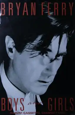 Boys and Girls is the sixth solo studio album by English singer and songwriter Bryan Ferry, released on 3 June 1985 by E.G. Records. The album was Ferry's first solo album in seven years and the first since he had disbanded his band Roxy Music in 1983. The album was Ferry's first and only number one solo album in the UK.[2] It was certified Platinum by the British Phonographic Industry (BPI) and contains two UK top 40 hit singles. It is also Ferry's most successful solo album in the US, having been certified Gold for sales in excess of half a million copies there.