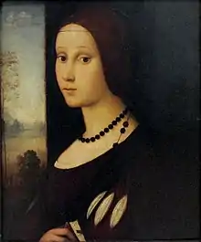 The Queen was a prominent figure in Roman society. Her presence at the proxy wedding of Grand Prince Ivan III of Russia and the Byzantine princess Sophia Palaiologina in 1472 was widely noted, as was her pilgrimage to L'Aquila on the occasion of the translation of Bernardino of Siena's relics to a new church (the construction of which was funded, among others, by King Thomas). That she lived a comfortable life can be deduced from the impression she left on Roman chroniclers, who wrote about the entourage of 40 mounted knights accompanying her on a pilgrimage to St. Peter's Basilica to celebrate the new year 1475.[30]
