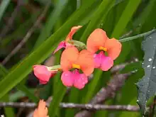 Chorizema retrorsum is a species of flowering plant in the family Fabaceae and is endemic to the southwest of Western Australia. It is a trailing or erect to climbing shrub that typically grows to a height of 3 m (9.8 ft) high. It has orange-red, yellow and pink flowers from August to December.[2]
