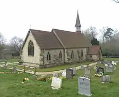 Cross-in-Hand is situated at the junction the A267 running between Royal Tunbridge Wells and Eastbourne, and the B2102 which terminates in Cross-in-Hand but joins the A22 in Uckfield.[1] It is the easternmost location of the A272 road, which continues west to the A30 in Hampshire. The village has a high street on the B2102 road that links Cross-in-Hand to Uckfield. Retail shops include a petrol station, wooden furniture shops, a motorcycle shop, a bakery, and a funeral director's. The Church of England parish church is dedicated to St Bartholomew, and there is one pub, the Cross in Hand. Other village facilities include a village hall, rugby football, bowls and tennis clubs.