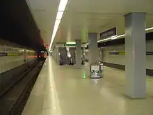 Due to problems with the installation and acceptance of the Skytrain at first, a bus shuttle was established. The Skytrain is a driverless suspended monorail train, which commenced operations on 1 July 2002 and now connects the long-distance station via two intermediate stops at P4 parking station and Terminal A/B to the Terminal C station.