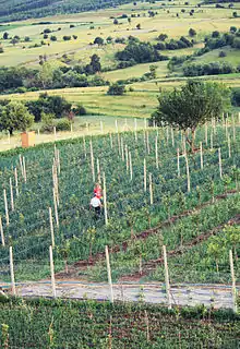 After the war, farmers began work in very difficult conditions, without tools and without proper machinery. In the meantime, the government was not properly consolidated. Central and local institutions did not have the budget nor the experience needed to face the challenges of the time, on one hand, while many foreign organizations who had come to offer help in the consolidation of Kosovo agriculture acted without any clear concept and did not yield the expected results, resulting in stagnation. With the start of the privatization process, the majority of the mentioned agrarian undertakings changed their destination. Only two of them, the plantation in Kravarica and poultry farm in the village of Livoc revived their previous production. Konsoni abattoir opened for broilers with an annual capacity of 600,000 thousand kg of meat. This farm has 60 full-time employees and a certain number of seasonal worker with a bright development prospect. Two companies, MOEA and Ask Food, have raised capacity of orchards in area of about 200 hectares and have built processing capacities. Ask Food has signed contracts for the export of its products to Germany, Albania and other countries. These two companies have approximately 150 regular employees and 200 seasonal workers.[3]
