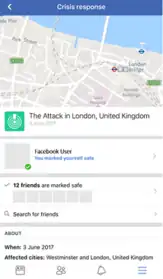 - ↑ "Facebook activates Safety Check following London terror attack as #PrayForLondon trends". The Daily Telegraph. Retrieved March 22, 2017.