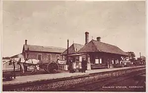 The line was opened on 1 June 1864,[1] between Faringdon and the Great Western Railway (GWR) at Uffington, with construction funded by a consortium of local business men called the Faringdon Railway Company which was purchased outright by the GWR in 1886.[2] Constructed as a broad gauge line it was converted to standard gauge in 1878. Passenger traffic peaked in 1913, but later declined to such an extent that the passenger service was withdrawn on 31 December 1951.[1] Freight traffic continued to use the line until 1964.