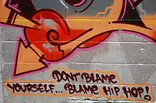 Encompassing graffiti art, MCing/rapping, DJing and b-boying, hip hop became the dominant cultural movement of the minority-populated urban communities in the 1980s.[64] The 1980s also saw many artists make social statements through hip hop. In 1982, Melle Mel and Duke Bootee recorded "The Message" (officially credited to Grandmaster Flash and The Furious Five),[65] a song that foreshadowed the socially conscious statements of Run-DMC's "It's like That" and Public Enemy's "Black Steel in the Hour of Chaos".[66]