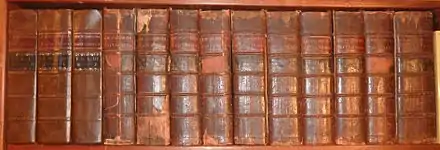 The first edition was reprinted in London, with slight variants on the title page and a different preface, by Edward and Charles Dilly in 1773 and by John Donaldson in 1775.[3] On the occasion of the 200th anniversary of the 1st edition, Encyclopædia Britannica Inc. published a facsimile of the 1st edition, even including "age spots" on the paper. This has been periodically reprinted and is still part of Britannica's product line.[7]