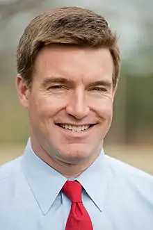 At the McCracken County Democratic Executive Committee's annual Alben Barkley Dinner, Conway and Mongiardo began making their cases for the nomination, with Mongiardo touting his experience as a medical doctor and emphasizing the importance of health care in the national dialogue and Conway countering that he would be able to address a broader range of issues as a senator.[89] A further contrast came to light in July 2009 when Conway announced his support for the proposed American Clean Energy and Security Act, which would have created a system of emissions trading in the United States, but qualified his support by saying the bill should include language to protect affected consumers and businesses; Mongiardo called the bill a "terrible piece of legislation".[86] The bill became an issue at the annual political picnic at Fancy Farm, Kentucky, with Mongiardo calling on Conway to condemn the legislation and Paul telling the crowd that "[Conway is] kind of against it a little bit and he's kind of for it a little bit".[90][91] Following the event, The Washington Post's Chris Cillizza, moved the primary between Conway and Mongiardo from seventh to fifth in his list of the ten most competitive primaries in the nation.[92] In October 2009, Conway announced his opposition to the Clean Energy Jobs and American Power Act, the Senate version of the emissions trading bill sponsored by Democratic Senators John Kerry (D-MA) and Barbara Boxer (D-CA).[93]