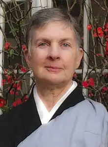 Eijun Linda Cutts (born 1947) is a Sōtō Zen priest practicing in the lineage of Shunryu Suzuki, a Senior Dharma Teacher at the San Francisco Zen Center. Cutts is a Dharma heir of Tenshin Reb Anderson, having received Dharma transmission from him in 1996.[1] She served as co-abbess of the San Francisco Zen Center from 2000 to 2007,[2] and had first begun practice at the San Francisco Zen Center in 1971;[3] later, she was ordained a priest by Zentatsu Richard Baker in 1975. Currently living at Green Gulch Farm Zen Center, as abbess she had been aware of the significance in being a woman in a leadership position in religion that has historically been a patriarchy. In this vein, within her first year as abbess she instituted the ceremony in which female ancestors could be honored.[1] She became Central Abbess of San Francisco Zen Center in 2014.