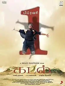 Kadal (ⓘ; transl. The sea) is a 2013 Indian Tamil-language drama film[4] co-written, co-produced and directed by Mani Ratnam.[3] The film stars debutantes Gautham Karthik,[5] and Thulasi Nair,[6] with Arjun Sarja, Aravind Swamy and Lakshmi Manchu in supporting roles. The music was composed by A. R. Rahman. The film revolves around life of fishermen who instill the fact that faith can sometimes lead to the triumph of humanity.[7]