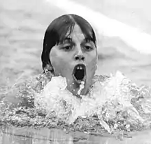 Karla Linke (also Carla; born 29 June 1960) is a retired German swimmer who won the 200 m breastroke event at the 1974 European Aquatics Championships, breaking the world record twice in the process.[1] The following year, she collected two medals at the 1975 World Aquatics Championships: a silver in the 400 m medley and a bronze in the 200 m breaststroke.[2] She also competed at the 1976 Summer Olympics in the 100 m and 200 m breaststroke events and finished eighth and fifth, respectively.[3]