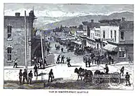 ![]() Cornella Building, S.W. corner of Pine and 6th St. ~ 1889 |