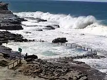 The word "Maroubra" originates from an Aboriginal word meaning "like thunder",[43] which refers to the surf conditions and the sounds of the waves. The length of Maroubra Beach and good surf conditions provide additional photographic opportunities for the local photographers. There are numerous photography guides for Maroubra Beach and Mahon Pool and professional photographers showcase photos from this place as a part of their portfolio.[44][45]