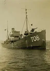 HMNZS South Sea (T08) | 1941–1942 | Previously HMT Ferriby of the Royal Navy,[6] launched as a civilian trawler in 1913. Sunk 19 December 1942 in collision with inter-island ferry Wahine in Wellington Harbour[7] | |