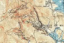 Mount Tamalpais's peaks rise over the redwood-shaded canyons and rugged grass-covered hills of Marin. Its highest point, East Peak, is 2,571 feet (784 m).[7] During the late 19th Century, Marin County was regarded more as a source of lumber than as place of natural beauty and respite from the densely populated areas just south across the San Francisco Bay.