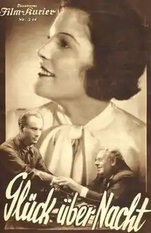 Overnight Sensation or Overnight Happiness (German: Glück über Nacht) is a 1932 German comedy film directed by Max Neufeld and starring Magda Schneider, Hermann Thimig, and S. Z. Sakall.[1]