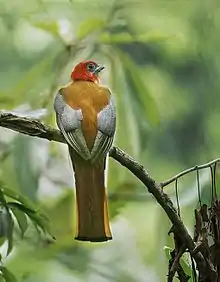 - 1 2 Steward, J.S.; Pierce, A.J. (2011). "Breeding biology of Orange-breasted (Harpactes oreskios) and Red-headed (H. erythrocephalus) trogons in Khao Yai National Park, Thailand". Journal of Field Ornithology. 82 (2): 175–183. doi:10.1111/j.1557-9263.2011.00320.x.
