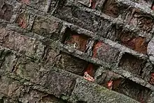 Repointing is the process of renewing the pointing, which is the external part of mortar joints, in masonry construction. Over time, weathering and decay cause voids in the joints between masonry units, usually in bricks, allowing the undesirable entrance of water. Water entering through these voids can cause significant damage through frost weathering and from salt dissolution and deposition. Repointing is also called pointing,[1] or pointing up, although these terms more properly refer to the finishing step in new construction.
