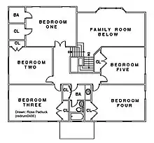 A splanch is not a ranch, and it is not a split level. Rather, it is a three-level house inside of a two-level skin. Typically, they are a center-hall type of home, built on a slab. On the ground level, there is a garage in front, loaded from either the side or the front of the house. Garages were one or two bays, depending on the size of the splanch. Opposite the garage and the center foyer, was a formal dining room and an eat-in kitchen. Behind the garage, elevated up half a level, was the living room, which faced the backyard. Behind the kitchen, and on the same level as the kitchen, was a den, often outfitted in wood paneling, and was adjacent to the elevated living room. Stairs rise up from the foyer to the living room, then turn, and rise up to the second (or third) floor, which contains the bedrooms. The bedroom hallway is open to the stairs and living room below. Four and five bedroom models are commonplace, yet smaller three bedrooms examples exist.