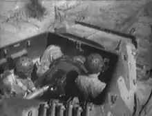 All the US tank destroyers were built without turret roofs. This was done to save weight but also allowed a wider field of view to spot enemy armor[16] and quicker ammunition stowage. The drawbacks included vulnerability to small arms fire (especially from elevated positions), grenades, and splinters from air bursting artillery.[32] Exposure to wind, rain, snow and freezing temperatures also made operations difficult, and many tank destroyer crews placed tarpaulins or other material over the turret to improve both their comfort and their operational effectiveness.[33] Other significant differences between tank destroyers and tanks was that tank destroyers lacked coaxial and bow .30-caliber machine guns. This reduced their ability for infantry support and close-in self defense. Tank destroyers did retain a turret top .50-caliber machine gun as did medium tanks and useful for reconnaissance by fire and self defense.
