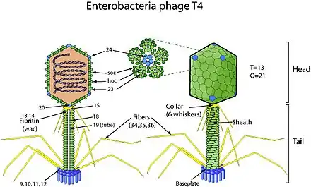 Tevenvirinae is a subfamily of viruses in the order Caudovirales, in the family Myoviridae. Bacteria and archaea serve as natural hosts. There are 135 species in this subfamily, most included in 12 genera.[1][2]