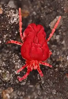 - ↑ Mąkol, J.; Wohltmann, Andreas (2000). "A redescription of Trombidium holosericeum (Linnaeus, 1758) (Acari: Actinotrichida: Trombidioidea) with characteristics of all active instars and notes on taxonomy and biology". Annales Zoologici. 50 (1): 67–91.