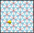 The kisrhombille tiling triangles represent the fundamental domains of p6m, [6,3] (*632 orbifold notation) wallpaper group symmetry. There are a number of small index subgroups constructed from [6,3] by mirror removal and alternation. [1+,6,3] creates *333 symmetry, shown as red mirror lines. [6,3+] creates 3*3 symmetry. [6,3]+ is the rotational subgroup. The commutator subgroup is [1+,6,3+], which is 333 symmetry. A larger index 6 subgroup constructed as [6,3*], also becomes (*333), shown in blue mirror lines, and which has its own 333 rotational symmetry, index 12.