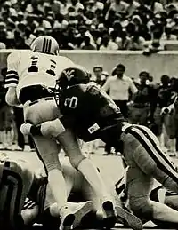 The 1973 and 1974 seasons, however, were not successful campaigns for the Mountaineers, as they finished with records of 6–5 and 4–7. Despite the disappointment of those seasons, Danny Buggs earned All-American status for his contributions in both campaigns. The 1975 season was successful as the Mountaineers compiled a 9–3 record, a 13–10 Peach Bowl victory over North Carolina State, and a final ranking of No. 17 in the Coaches Poll and No. 20 in the AP Poll. Additionally, the Mountaineers upset the No. 20 Pitt Panthers 17–14 on a game-winning field goal in the closing seconds in yet another memorable chapter of the Backyard Brawl. Bowden later described the victory as one of the most exciting ones of his coaching career.[30] Following the 1975 season, Bowden left WVU to become the head coach at Florida State, where he would become the second winningest coach in NCAA Division I-A/FBS history. In just six seasons with the Mountaineers, Bowden produced a 42–26 record, good for fifth all-time in the program.[21] Bowden's departure not only signaled the end of his tenure at West Virginia, but to the end of WVU's winning ways in the 1970s.