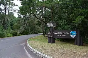 William M. Tugman State Park is a state park in the U.S. state of Oregon. Administered by the Oregon Parks and Recreation Department (OPRD), the park borders Eel Lake, about 8 miles (13 km) south of Reedsport near U.S. Route 101.[3]