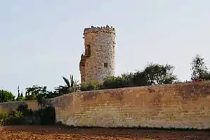 Xlejli Tower (formerly spelt Shilejli Tower, Maltese: Torri tax-Xlejli or Torri Xulliela),[2] also known as Bettina Tower, is a tower in Gudja, Malta. It was probably built as a watchtower since it has views over a large area of land. The age of the tower is not known, and it could date back to the Roman or medieval periods, or possibly a later reconstruction. The tower is now located in the grounds of Palazzo Dorell, and it is closed to the public.